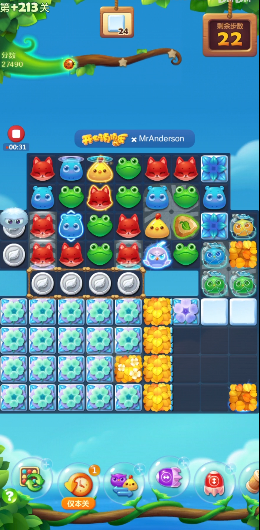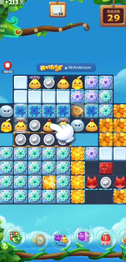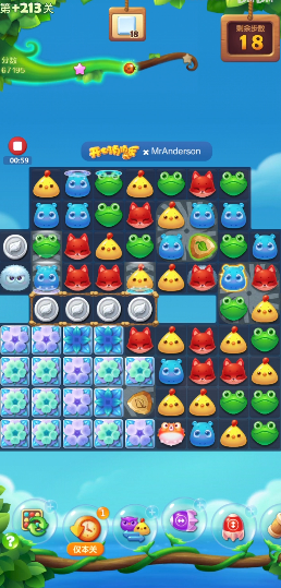 最有效的通关策略是主动制造魔力鸟,并将其与直线特效或爆炸特效进行组合使用。魔力鸟可以消除全屏的同色动物,而直线特效能整行或整列清除,它们的组合能产生巨大的连锁反应,一次消除大片区域内的方块和冰块,是攻克被分割棋盘的不二法门。开局后应优先观察动物排列,寻找能直接生成四连或五连特效的机会,快速制造出第一个关键道具,为后续的连锁消除奠定基础。